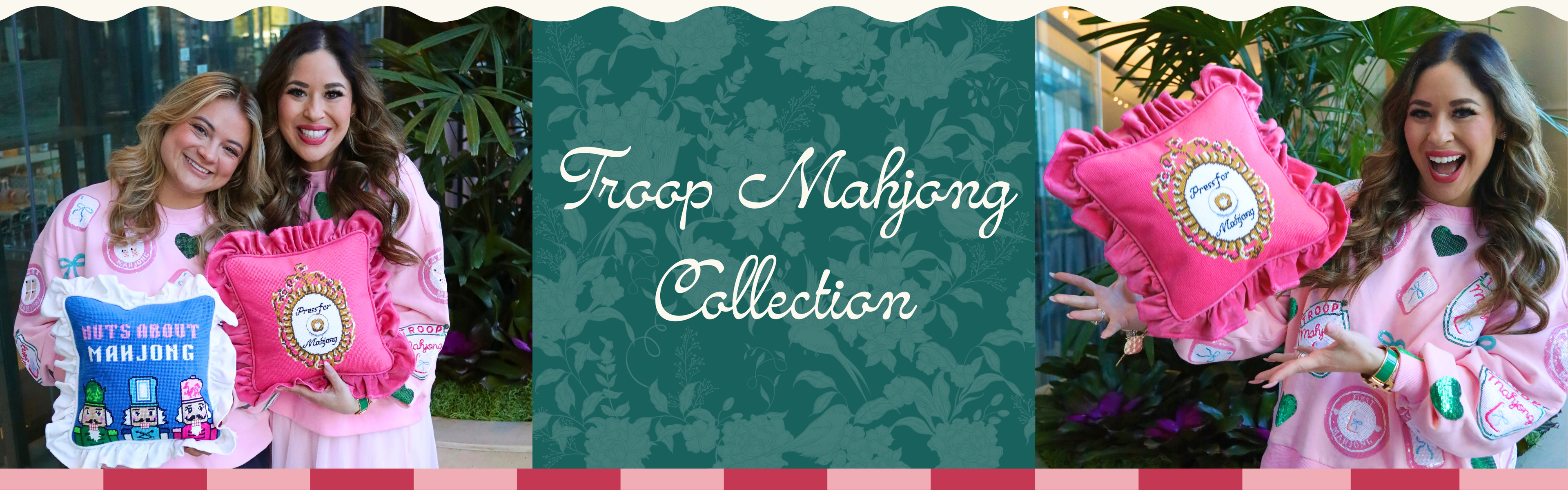 Inspired by our favorite past time, this needlepoint collection was designed in collaboration with Kristel Powell of Troop Mahjong and boasts vibrant colors and intricate needlework.