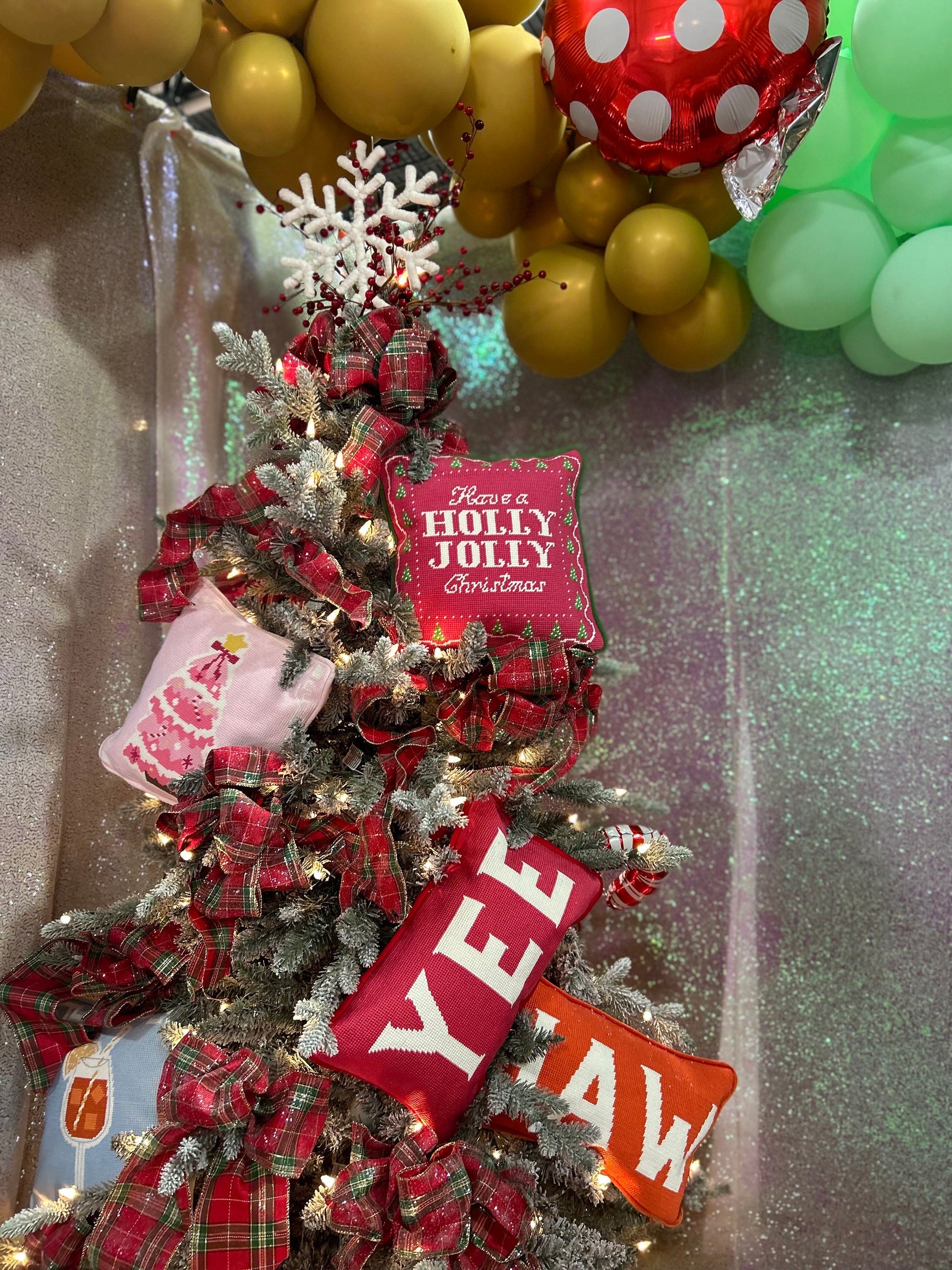 Pink Christmas Tree Needlepoint Pillow